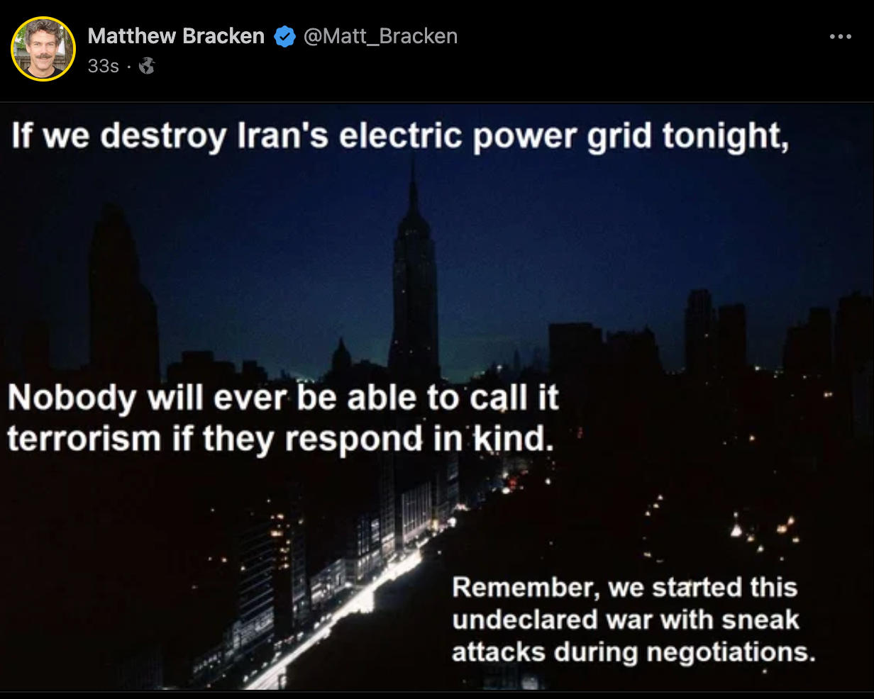 Trump just used this two weeks as a cooling off period--and when it's up, we will sluff off some excuse and then go home. Afterwards Iran will resume with fervor it's ballistic missile program and put the Shahid drones back into production at 500 per day. Also, I bet they'll get real busy enriching their uranium--as they would be stupid not to. On top of this they should approach Russia for a few batteries of their Oresnik missiles systems--talk about a game changer that would be. The ability to level, with precision anything up to a couple thousand miles away. You can be during this two week period that Russia and China will be pumping in mass stockpiles of AAA manpads and other needed goodies. I don't think Iran is going to be fooled anymore by American diplomacy.