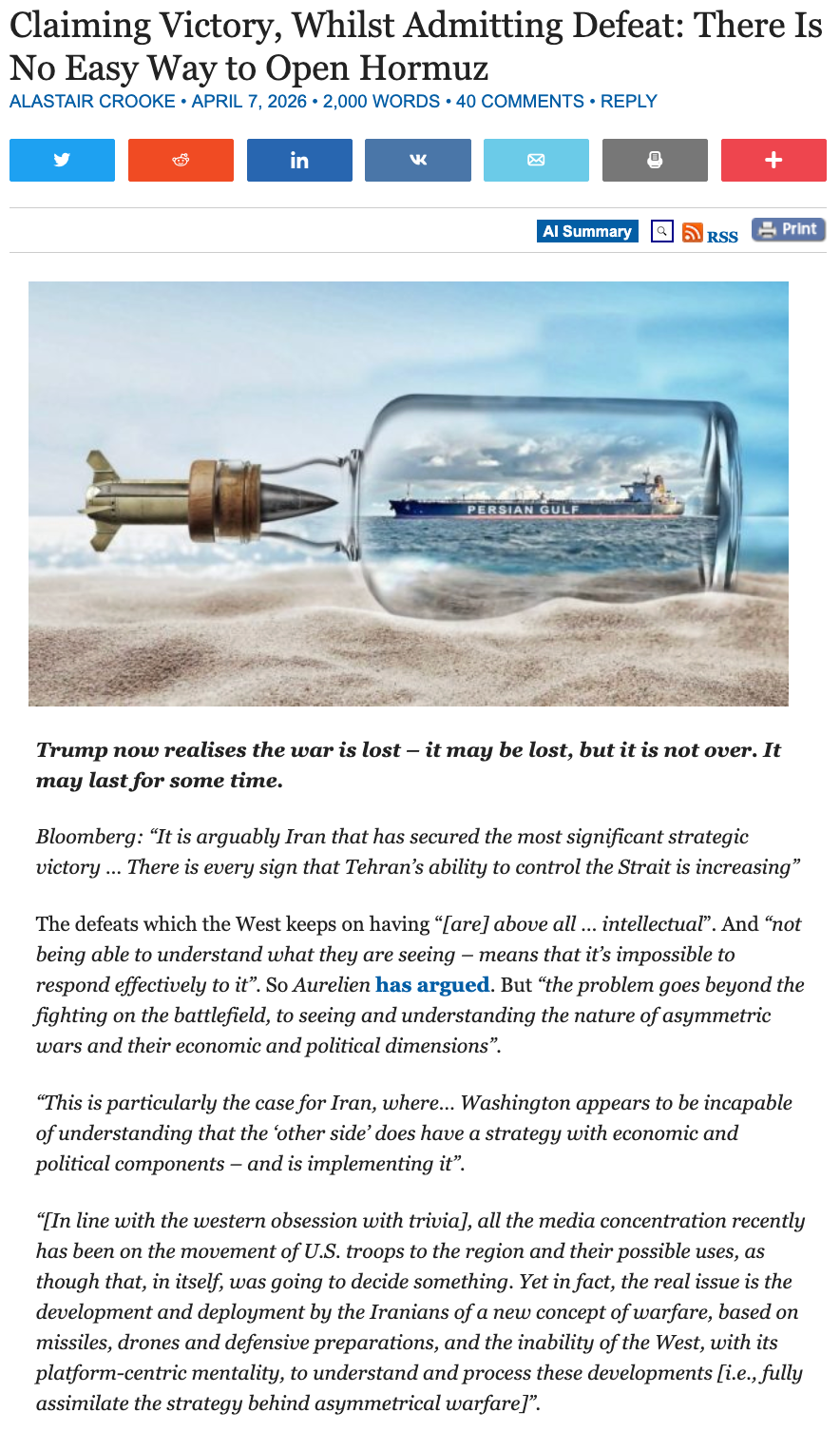 Oh--you heard it on Fox news out of Hannity's mouth that Iran was begging for a cease fire. Yeah--right. Actually, it's the USA pressing Iran as we need two weeks to re-arm and re-load all of these guided missile frigates, destroyers and carriers with weapons... it takes two weeks round trip to the ports that can do this FYI.